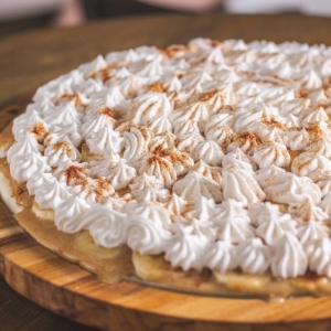 Mussarela, Banana, Leite Condensado e Canela em Pó.