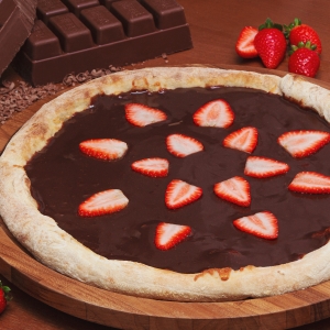 Mussarela, Morango, Leite Condensado e Chocolate.